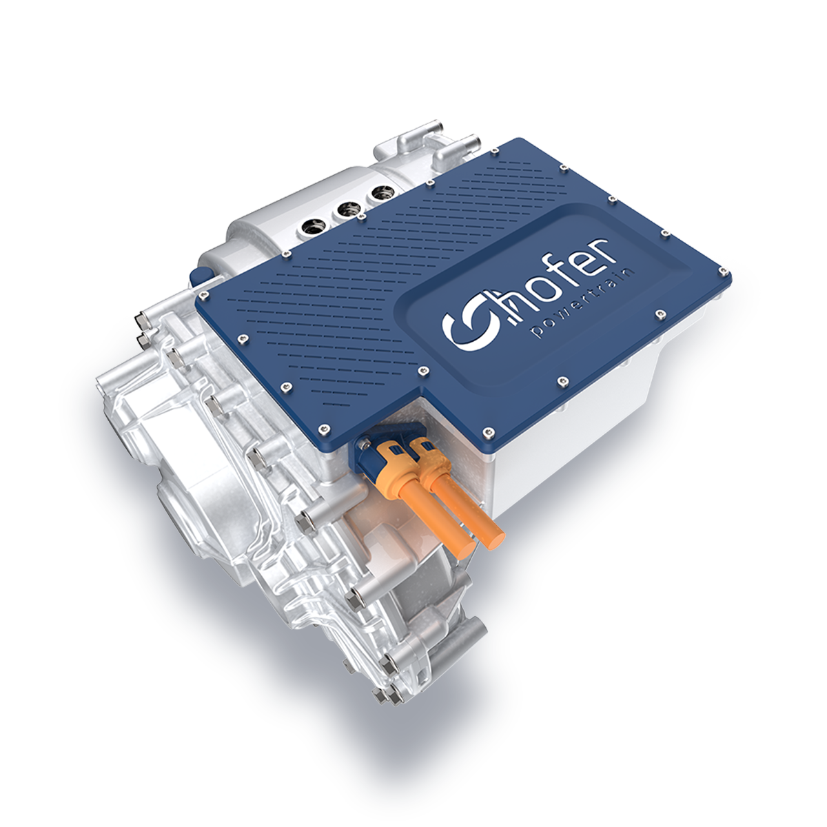 This modular system with a standardised e-machine presents a highly adaptable solution, consisting of all necessary components in one housing. It offers a typical outer diameter of 220. At the same time, the length of the solution is very variable - 5, 6, or even 8 segments are achievable, so the shape can be adapted to suit the application. It can bring power capacities of up to 180 kW. The packaging of this EDU already provides for the use of a Park Lock as an add-on feature. Likewise, hofer powertrain can install a decoupling unit or a combination of both elements.